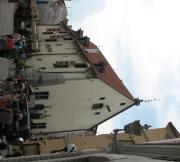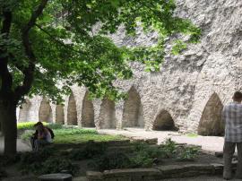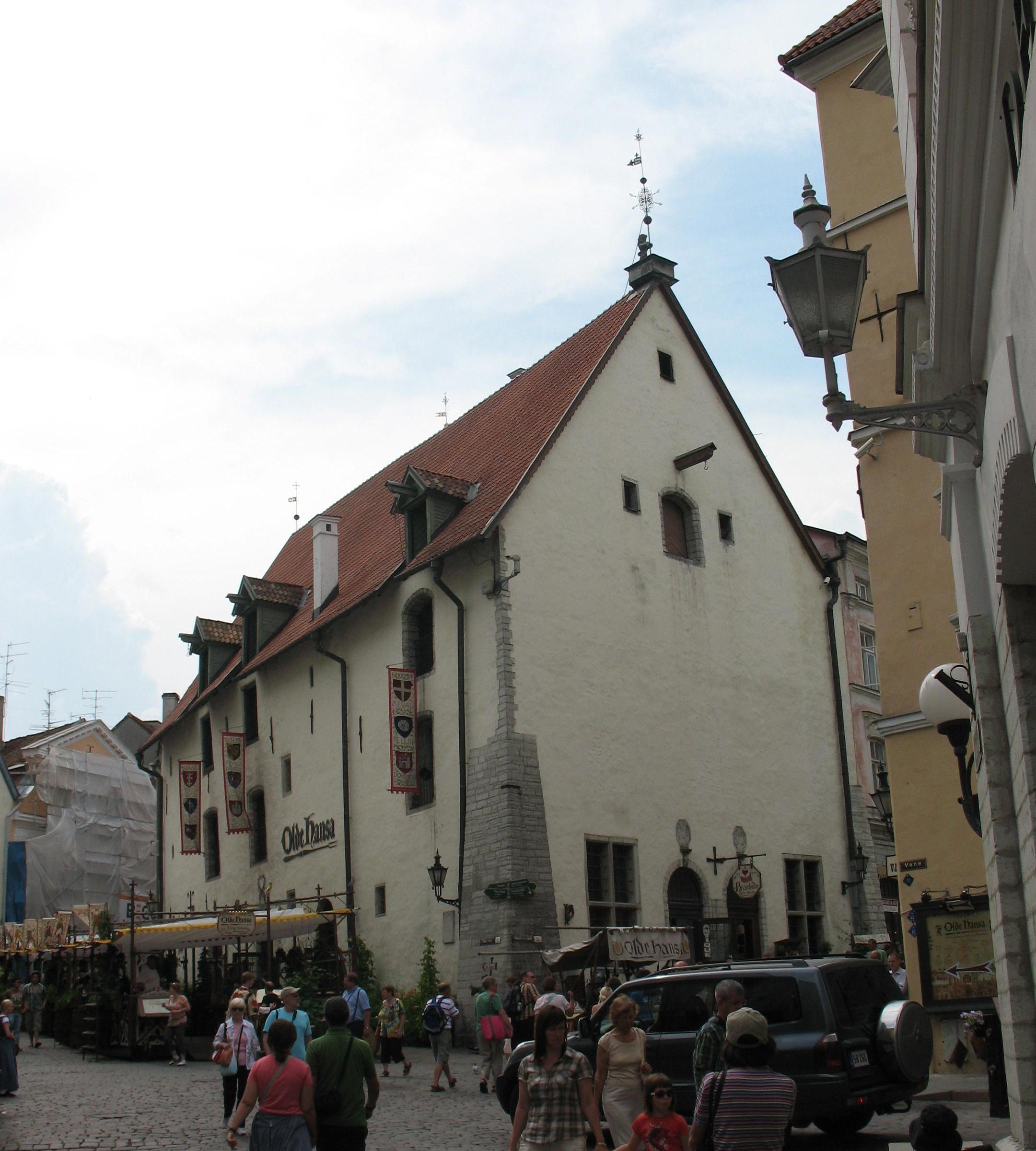A bus transferred the ferry passengers from the dock to the main bus stop a couple of blocks outside the old town. There were no signs telling us which direction to walk and the bus stop bordered a large swath of park, so I made an educated guess – it was hard to tell where I was when I looked at my map, not least because Estonian looks like Finnish, which is to say impenetrable and words are long, compound affairs – and headed for the tallest church spire I could see. Another couple who had gotten off the bus asked me for directions to the old town and I told them which way I planned to go and why. Turned out to be a good guess. The first hundred yards or so took me past a 20th century shopping area but just as I started to think about checking my map again, I saw a tent offering walking tours and populated with several young hippie types. This was the starting point of the Tallinn Traveller tour, the ‘unofficial’ tour of Tallinn recommended by Rick Steves in an article on Tallinn a couple of years ago. The walking tour had just begun, so I joined the group; the tour was free, but there was a donation jar in the tent, along with a guest book for people to comment on the experience; both were pointed out at the end of the tour.