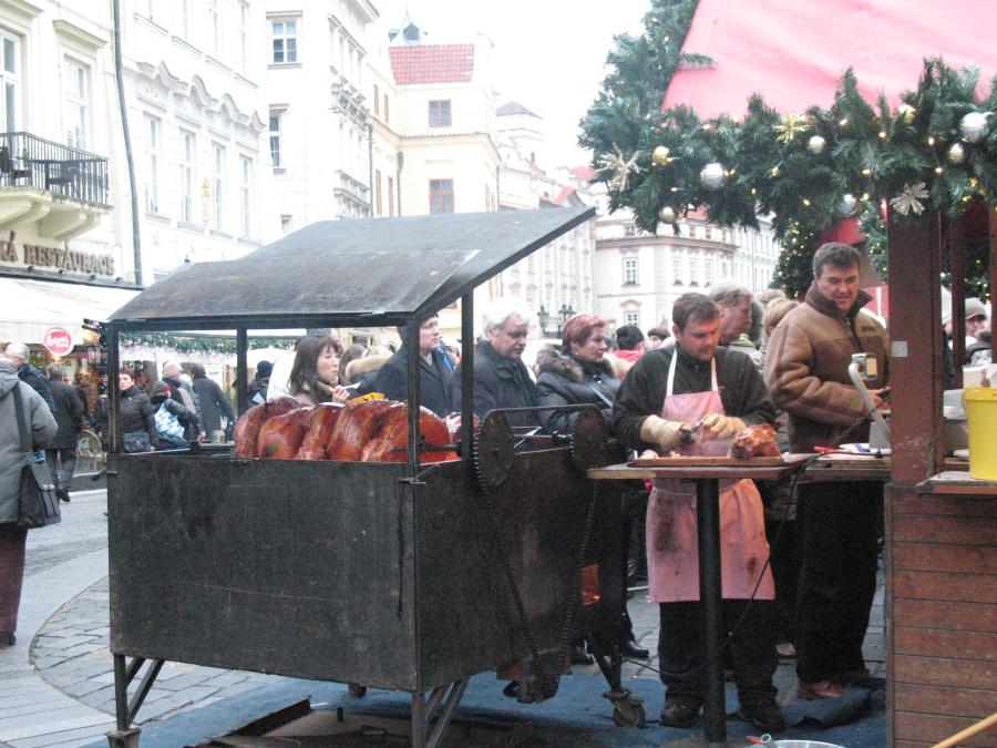 Prague hams roasting over the fire
